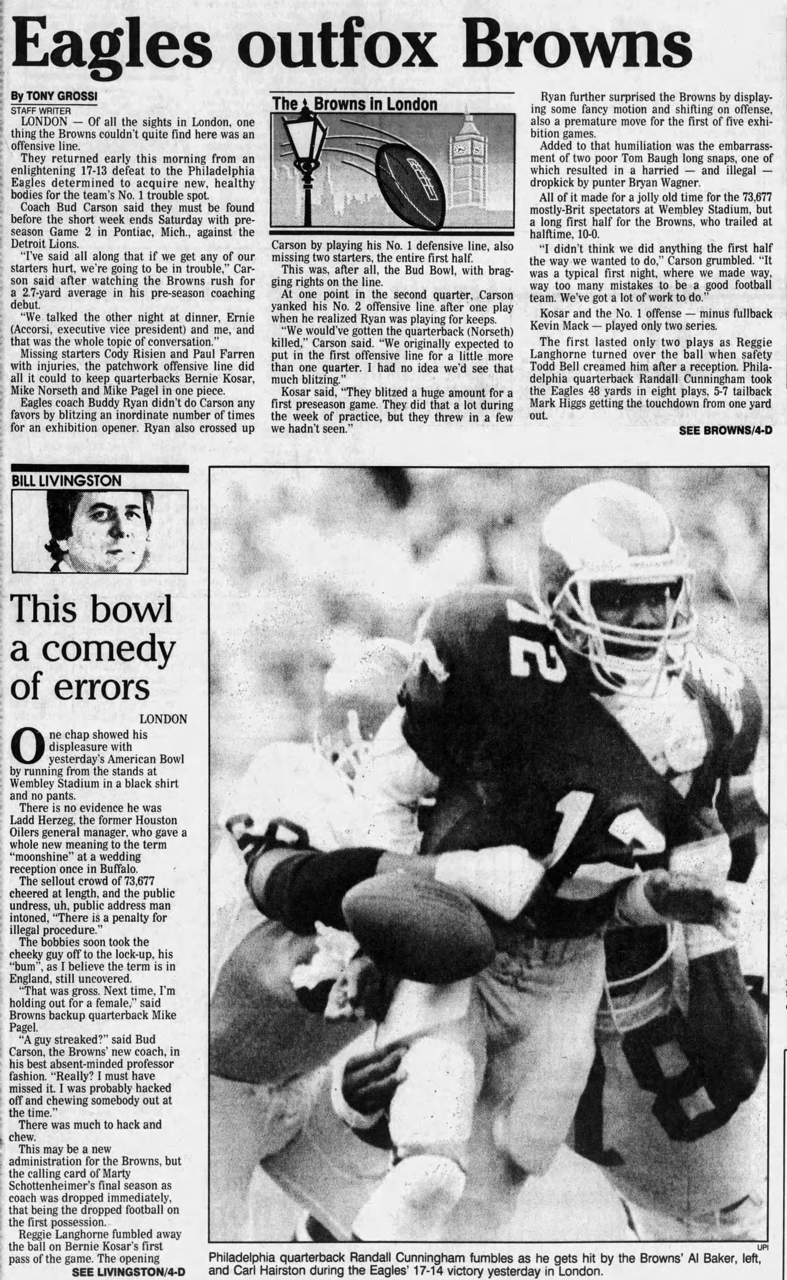 Bud Carson’s debut as Head Coach is a 17-13 loss at Wembley Stadium
