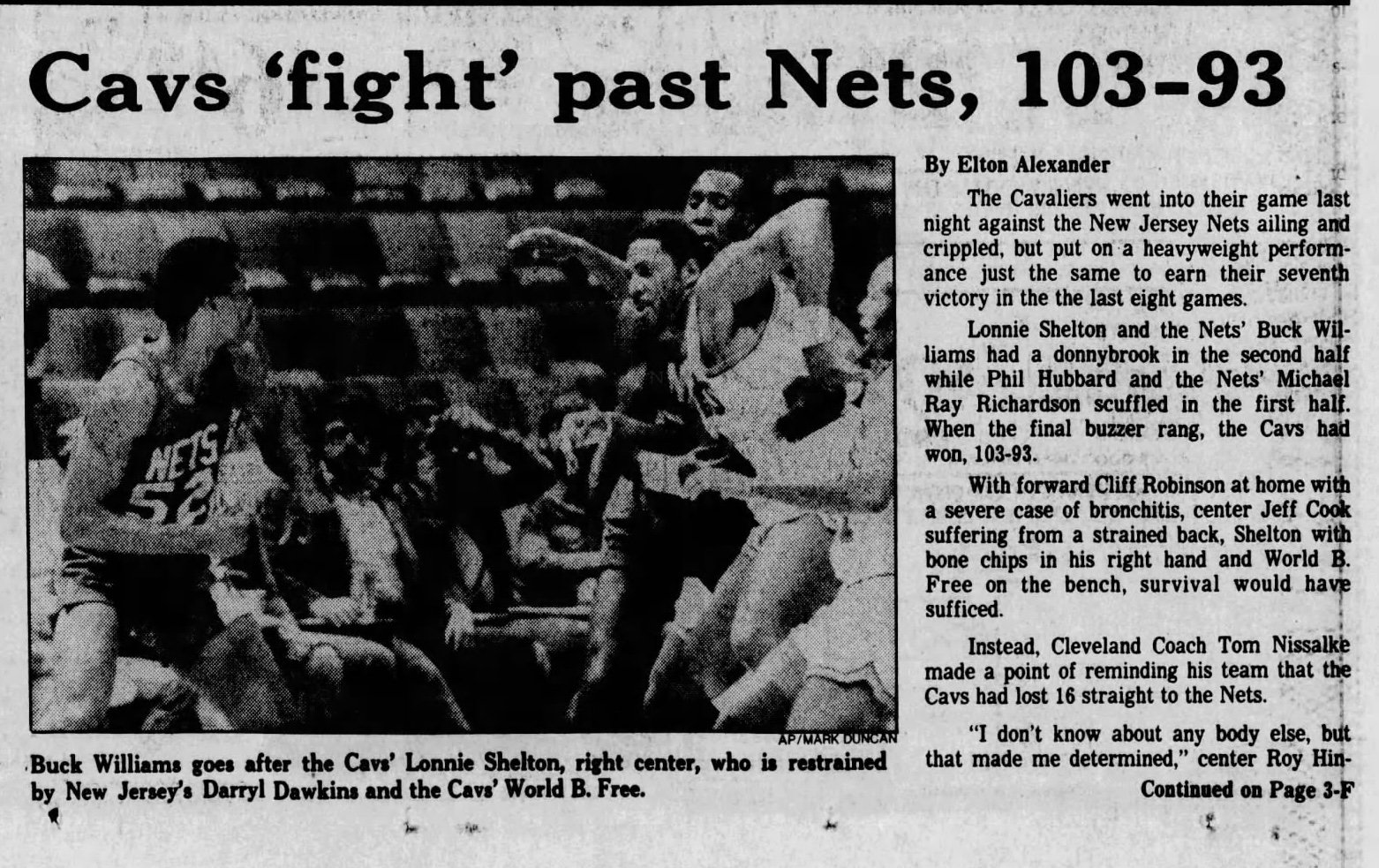 Cavs beat NJ Nets 103-93 at Richfield Coliseum