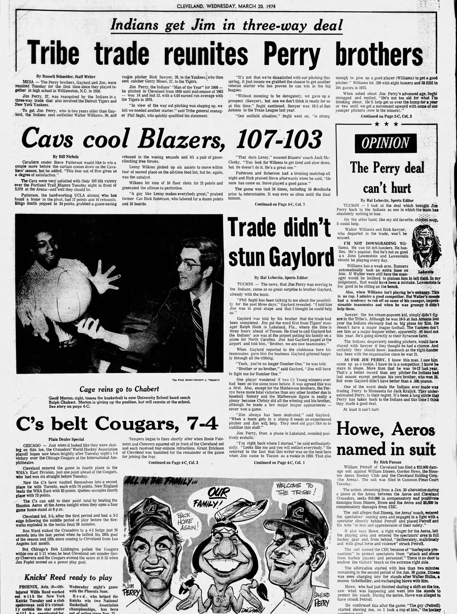 Indians reunite P Jim Perry w/ younger brother Gaylord in 3-team trade.