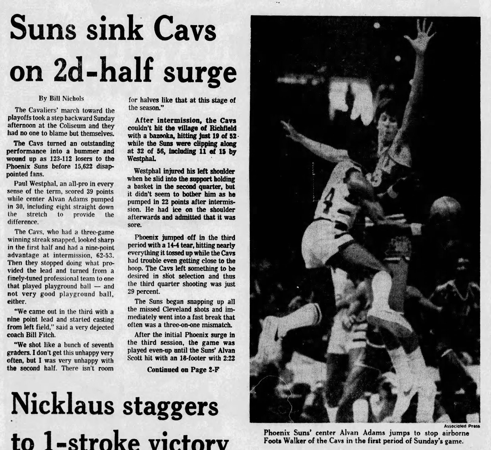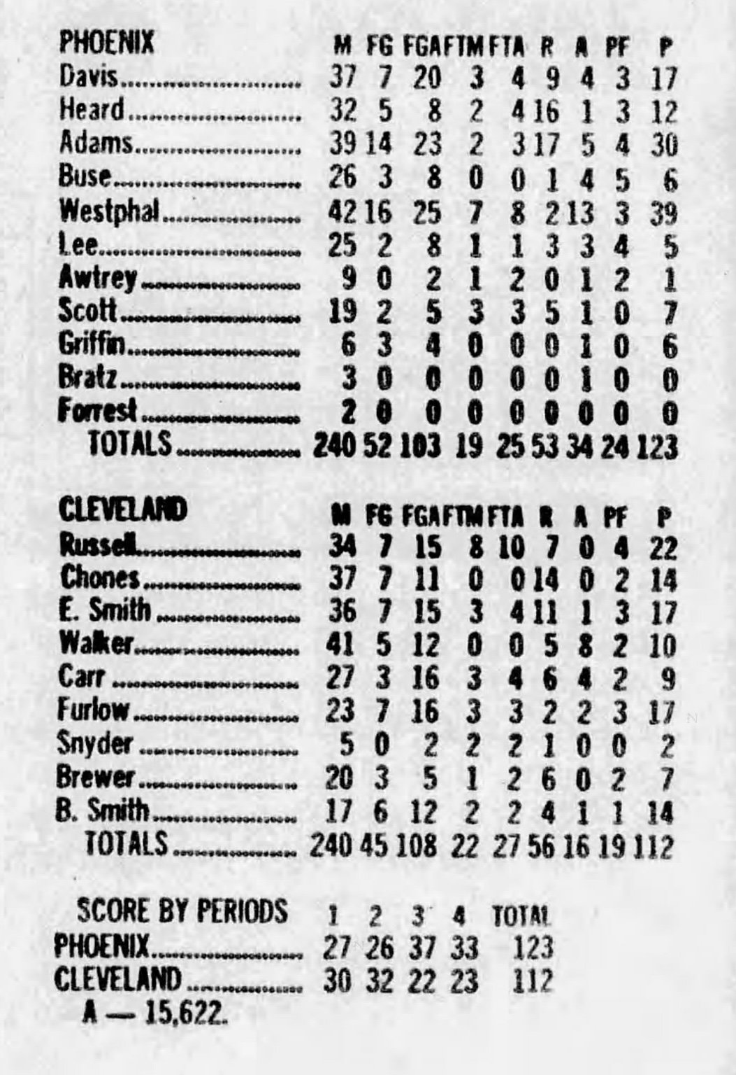 Paul Westphal (39 points) is too much, Cavs lose 123-112