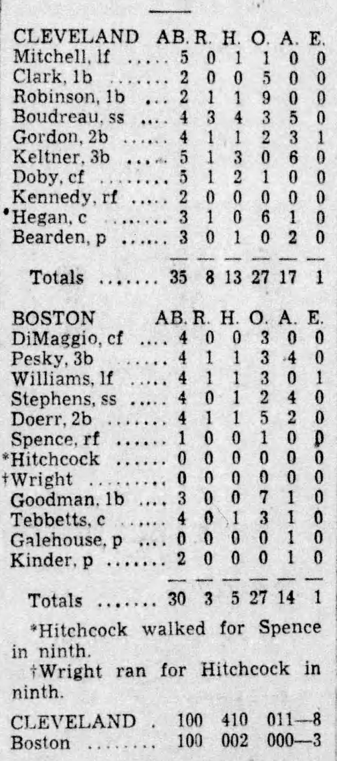 Rookie P Gene Bearden wins 20th, Lou Boudreau 2 HRs