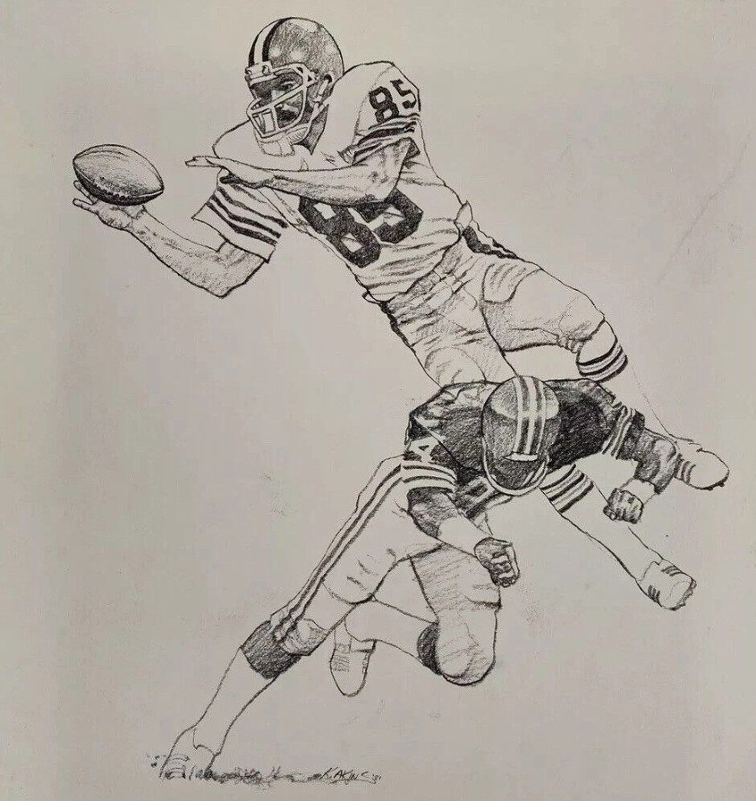 Collectible Shell Oil NFL print series, which included Cleveland Browns players from the “Kardiac Kids” era. These 11″ x 14″ art prints or posters were distributed by Shell gas stations and are popular, vintage memorabilia for fans.
