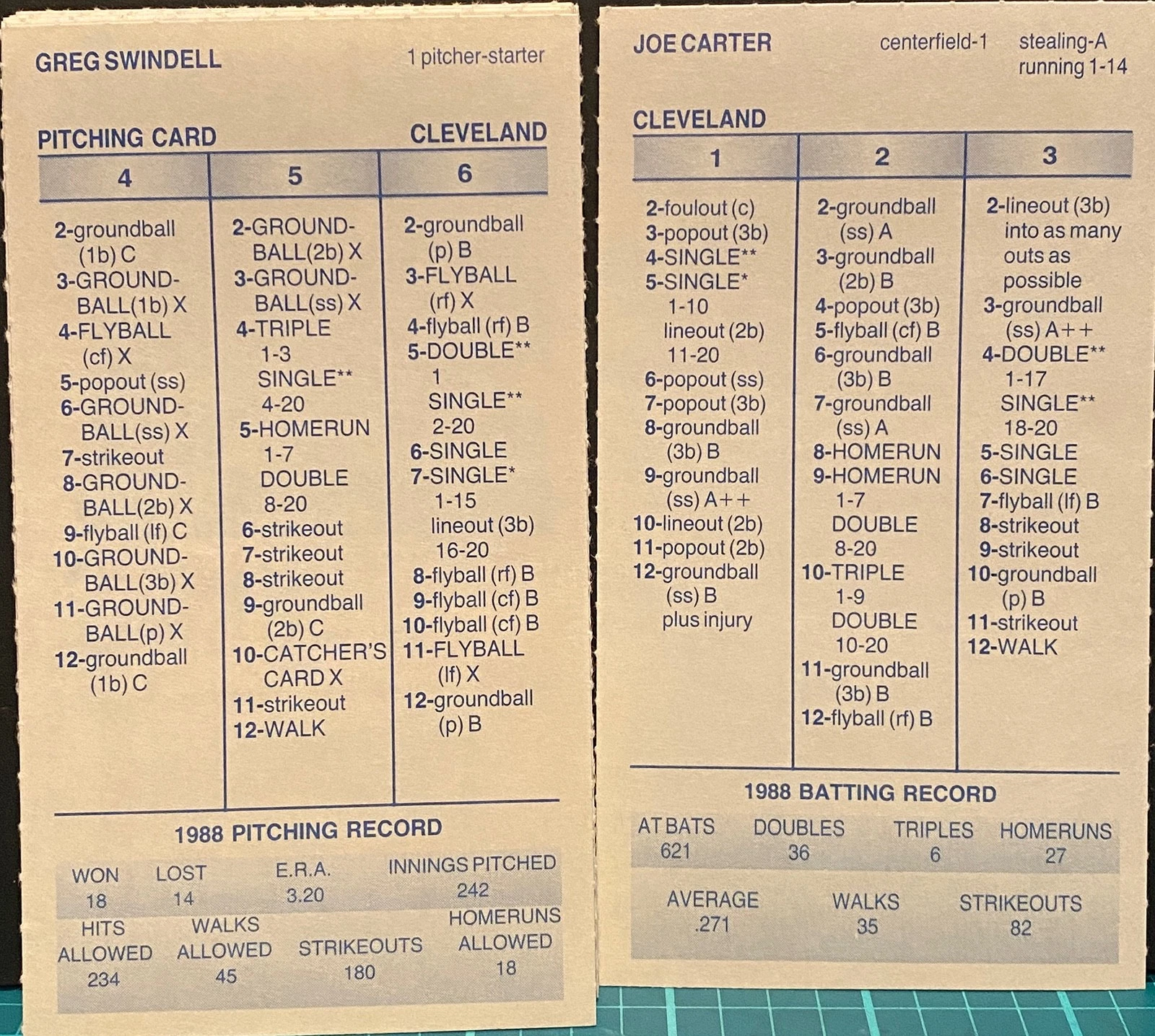 Strat-O-Matic Baseball (1988 Cleveland Indians team set)